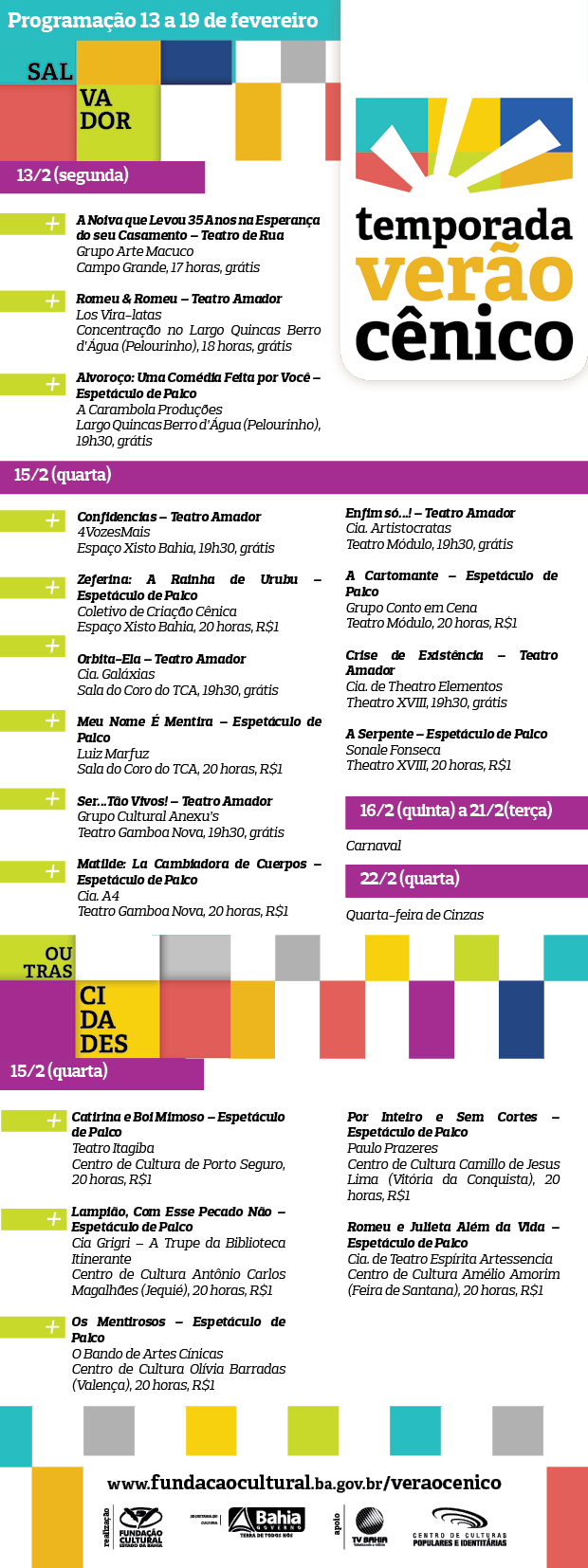 Temporada Verão Cênico - Confira programação de 13 a 19 de fevereiro