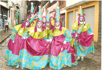As elaboradas máscaras e fantasias típicas da folia em fins do século XIX e início do XX são as características principais do Carnaval de Maragojipe, na região do Recôncavo da Bahia