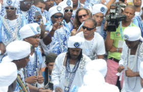O Largo do Pelourinho acolheu o tradicional ritual de Padê de Exu, que pediu proteção e paz nas ruas. O bloco, formado somente por homens, recebeu a superintendente da Secretaria de Políticas para as Mulheres (SPM/BA) Vera Lúcia Barbosa, que realizou um ato simbólico onde pediu aos membros do bloco o comprometimento na luta pela causa.