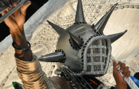 As vestimentas dos bailarinos e percussionistas chamaram atenção. Segundo o coreógrafo Silva Tavas, as roupas foram inspiradas nas burcas, trajes mulçumanos das mulheres que cobrem todo o corpo, até o rosto e os olhos. "Essa foi a forma que o bloco usou para protestar contra a invisibilidade que a grande mídia televisiva dá ao Cortejo Afro", afirma.