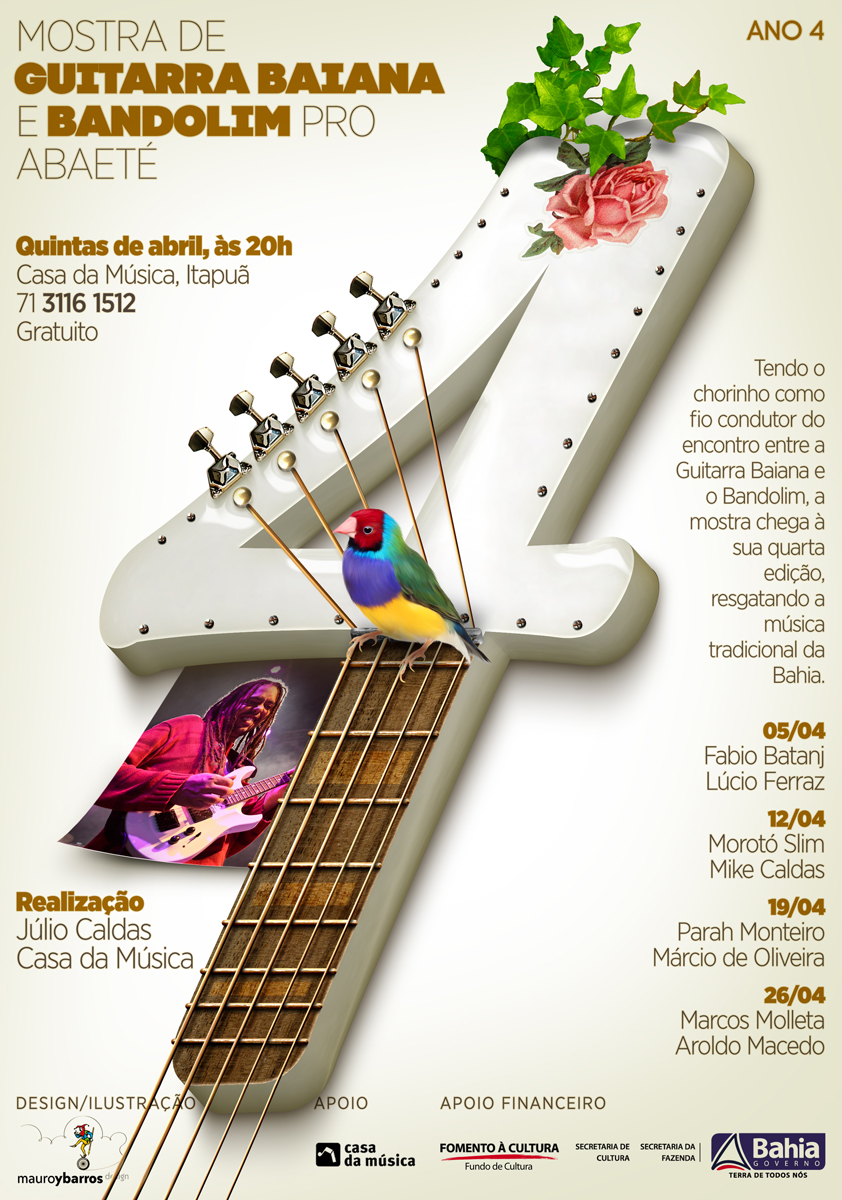 De volta a Salvador, integrou a banda do Trio Novos Bárbaros e da cantora Viviane Trípodi, além do seu próprio projeto, Dedo de Moça. Hoje, toca sua carreira na música instrumental e em paralelo, se apresenta com a Banda Convés, que desenvolve trabalho autoral, mas também toca covers de hits do pop rock, animando barzinhos e casas de show. Dois grandes músicos que vão dividir o palco da Casa da Música com Júlio e sua banda, responsáveis por sempre abrir a noite com muitas marchinhas, choros e outros ritmos com arte e sofisticação, sem jamais deixar de soar acessível a qualquer pessoa com ouvidos. MOSTRA DE GUITARRA BAIANA 2012 Em seu quarto ano, a Mostra foi idealizada por Júlio Caldas, é realizada em parceria com a Casa da Música e viabilizada através do Edital de Projetos Calendarizados do Fundo de Cultura da Fundação Cultural do Estado, órgão da Secretaria de Cultura da Bahia.