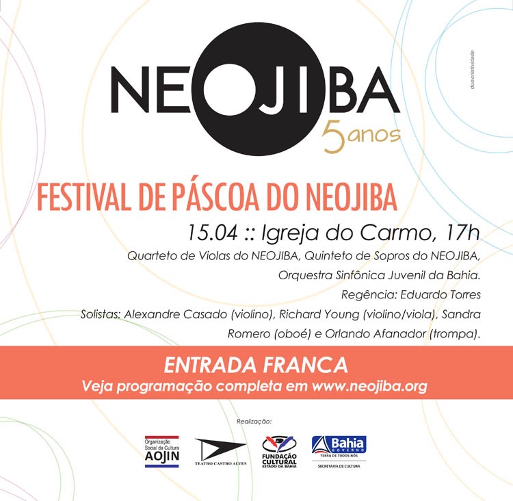 No próximo dia 22 de abril (domingo), o Programa NEOJIBA promove o terceiro concerto do Festival de Páscoa, na Igreja de São Francisco, no Pelourinho, às 17h. A apresentação contará com o Grupo de Metais do NEOJIBA que dividirá o palco com trompetistas da Universidade Federal da Bahia. O concerto terá ainda a participação do maestro Horst Schwebel, regente do Grupo de Metais durante a apresentação das obras de Händel, Byrd, Haufrecht e Verdi. Em “Feierlicher Einzug”, composição de Richard Strauss, o público poderá assistir aos solos dos trompetistas Joatan Nascimento, Heinz Schwebel, diretor da Escola de Música da UFBA, e Helder Passinho Jr., que também rege duas obras durante o concerto.
