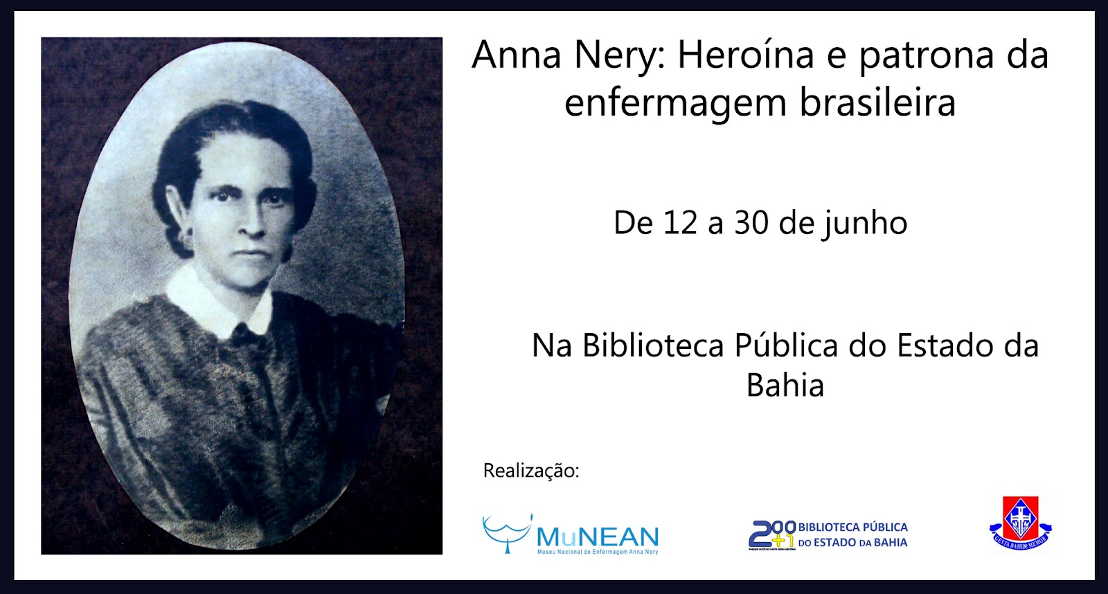 Quem visitar a Biblioteca até o dia 30 deste mês poderá conferir a exposição Anna Nery: Heroína e Patrona da Enfermagem Brasileira. A história da baiana que se dedicou de corpo e alma aos cuidados dos feridos na guerra do Paraguai no século XIX, pode ser vista gratuitamente no Foyer (térreo).