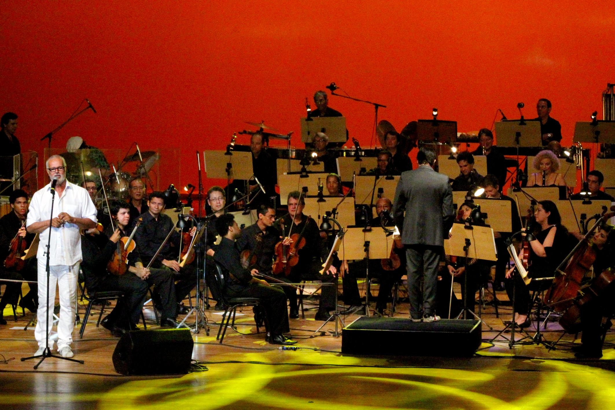 O universo literário criado pelo escritor baiano Jorge Amado inspirou o ‘Concerto Amado Amar’ com o qual a Orquestra Sinfônica da Bahia (Osba) homenageia o seu centenário de nascimento. A apresentação gratuita, na noite desta sexta-feira (10), no Teatro Castro Alves, mesclou o erudito e o popular e contou com a participação de artistas como Moraes Moreira, Saulo Fernandes, Carla Visi, Gerônimo, Roberto Mendes, Ana Mametto, Claudia Cunha, entre outros. A primeira-dama do Estado, Fátima Mendonça, e secretário de Cultura, Albino Rubim, assistiram ao espetáculo, que tem a direção musical e arranjos de Luciano Calazans e a direção artística de Maurício Martins. No sábado (11), às 20h, o concerto foi reapresentado no Terreiro de Jesus - Centro Histórico de Salvador. A ação faz parte do projeto Ano Jorge Amado, iniciativa desenvolvida pela Secretaria de Cultura (Secult) em parceria com diversas instituições envolvidas com a obra do escritor. O repertório traz composições assinadas por Jorge Amado, além de músicas encomendadas por ele para algumas das séries e filmes baseados em seus escritos. Na seleção, É Doce Morrer no Mar (do amigo e parceiro Dorival Caymmi e Jorge Amado), Vamos Falar de Tereza (Dorival Caymmi), O ABC de Jorge Amado (Moraes Moreira), Tema de Amor a Gabriela (Tom Jobim), A Luz de Tieta (Caetano Veloso) e Jubiabá (Gerônimo).