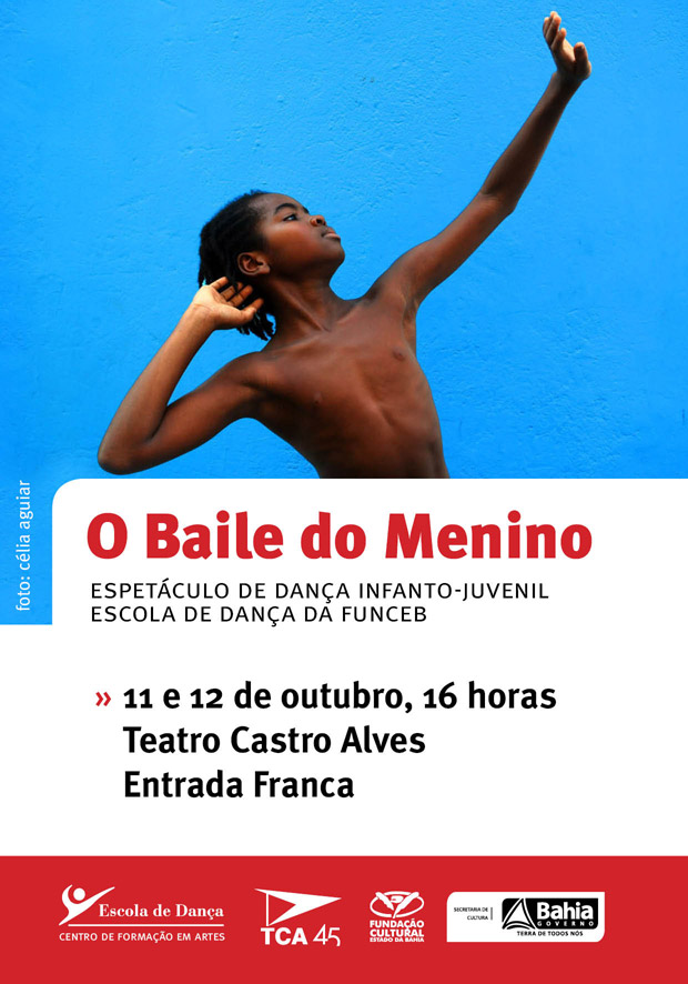 Como acontece anualmente, o Teatro Castro Alves reserva pautas especiais no mês de outubro para celebrar o Dia das Crianças, dentro da programação do TCA.Criança. Neste ano, os alunos do Curso Preparatório da Escola de Dança da FUNCEB, que vêm consolidando importantes realizações e conquistando cada vez mais reconhecimento na área artístico-cultural Bahia afora, ocupam o palco principal com O Baile do Menino, um conjunto de nove coreografias representativas das manifestações populares e tradicionais brasileiras, num grande e colorido espetáculo feito por crianças para crianças. Serão duas sessões abertas ao público, com entrada gratuita, nos dias 11 e 12 de outubro (quinta e sexta-feira), às 16 horas. A montagem revela o processo de desenvolvimento artístico e educativo vivenciado por alunos de sete a 17 anos, destacando elementos culturais que valorizam a diversidade como principal fundamento. O Baile do Menino tem figurinos e adereços de Denny Neves e coreografias dos professores da Escola de Dança da FUNCEB, que integra o Centro de Formação em Artes (CFA) da Fundação Cultural do Estado da Bahia (FUNCEB), vinculada da Secretaria de Cultura do Estado (SecultBA). “Desejo que a atenção e a energia dispensadas às crianças ao longo do mês de outubro sejam estendidas por todo o ano. Todo dia é dia de criança”, afirma a diretora da Escola de Dança da FUNCEB, Beth Rangel, que complementa: “Apresentar O Baile do Menino é compartilhar com a sociedade um trabalho que é desenvolvido ao longo do ano por uma escola pública de dança. Serão, aqui, crianças homenageando outras crianças”. O Curso Preparatório da Escola de Dança da FUNCEB atende a crianças a partir dos cinco anos de idade e tem um total de 11 níveis, acompanhando a evolução e o crescimento de seus alunos até os 17 anos. Desta forma, inicia jovens de comunidades de Salvador na formação em Dança e dá uma sólida opção educacional, artística e cultural para eles. Sobre a Escola de Dança da FUNCEB: Fundada em 1984, a Escola de Dança da FUNCEB constituiu-se como a primeira escola pública do gênero no país. Com sede no Pelourinho, no Centro Histórico de Salvador, capital da Bahia, a instituição reflete a identidade cultural do estado, reconhecendo, valorizando e disseminando suas origens e diversidade, na perspectiva de uma educação integral, democrática e cidadã. A Escola de Dança da FUNCEB atende uma média anual de mais de mil alunos, entre crianças, jovens e adultos, em especial afrodescendentes, oriundos de escolas públicas e moradores de bairros populares. Atua na iniciação, formação técnica e qualificação em dança, alinhada às políticas dos Ministérios da Cultura (MinC) e da Educação (MEC) e da Secretaria de Educação do Estado da Bahia. Outro comprometimento é com a Lei 10.639/2003, que torna obrigatório o ensino de História e Cultura Afro-Brasileira em todas as escolas brasileiras e inclui o Dia da Consciência Negra no calendário escolar. Para tanto, a Escola de Dança da FUNCEB garante a inclusão de disciplinas como Dança Afro, Danças Populares e Capoeira nos currículos de seus cursos e realiza eventos de valorização de conteúdos relacionados às matrizes culturais que também estruturam a dança feita na Bahia. O trabalho contínuo da Escola de Dança da FUNCEB traz resultados sólidos para o cenário desta linguagem artística no estado. Através de parcerias com grupos e projetos artísticos, mostras e circulação de produtos, alunos e ex-alunos da instituição vêm conquistando reconhecimento em todo o país, inclusive com premiações em festivais e editais de apoio à Cultura em todo o Brasil. O Baile do Menino Estrelado por crianças e adolescentes alunos da Escola de Dança da FUNCEB Quando: 11 e 12 de outubro, 16 horas Onde: Teatro Castro Alves (Praça Dois de Julho, s/n – Campo Grande. Salvador/BA) Quanto: Grátis Censura: Livre Mais informações: 71 3116-6518 Realização: Escola de Dança da FUNCEB/ CFA/ TCA/ FUNCEB/ SecultBA
