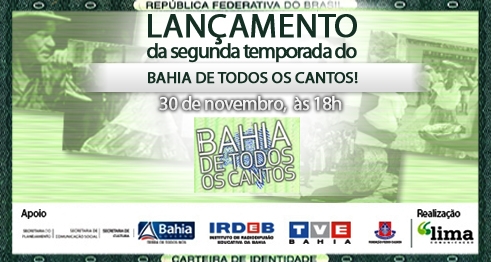 Mostras da diversidade cultural do território baiano poderão ser conferidas no dia 30 de novembro, às 18h, no Quadrilátero da Biblioteca Pública do Estado da Bahia (Barris). É que o lançamento da 2º Temporada do Projeto Bahia de Todos os Cantos reunirá expressões artísticas de diferentes territórios de identidade do estado, como as Paparutas da Ilha do Pati, em São Francisco do Conde, os índios Pankararés, grupo de Reisado e o samba de roda da comunidade do Quilombo Rio das Rãs, além do cantor sertanejo Wilson Aragão. A série de vídeos Bahia de Todos os Cantos é uma parceria da Secretaria de Planejamento e Secretaria de Cultura, através da Fundação Pedro Calmon, realizada pela Lima Comunicação e exibida na TVE e TV Brasil. O início das transmissões no canal 2 será no domingo, dia 02 de dezembro, às 15h30.