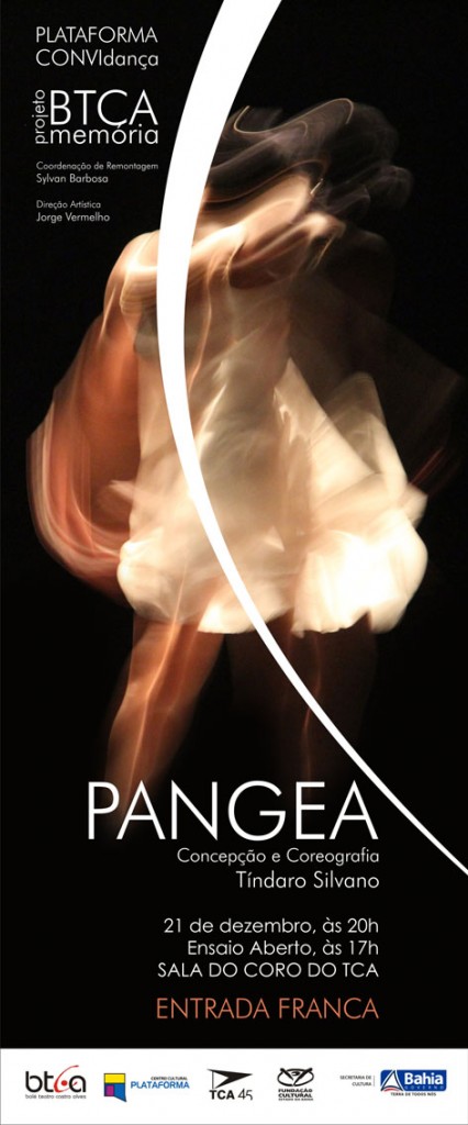 BTCA MEMÓRIA – Trata-se de um conjunto de ações e projetos destinados a resgatar a memória e dinamizar a dança contemporânea na Bahia, resultado de um processo de discussão com os bailarinos da companhia e de sugestões que eles apresentaram. Iniciado em 2007, o programa vem realizando remontagens de espetáculos significativos na trajetória de 31 anos do BTCA, em parceria com instituições de formação da área. Além de “Pangea”, foram remontados os espetáculos “Saurê” (1982), coreografia de Carlos Moraes com música de Emília Biancardi “Ilhas” (1981), coreografia de Victor Navarro, e “Sertania”(1983), de Lia Robatto, com música de Ernst Widmer. Esses três espetáculos foram destaque no projeto Domingo no TCA.