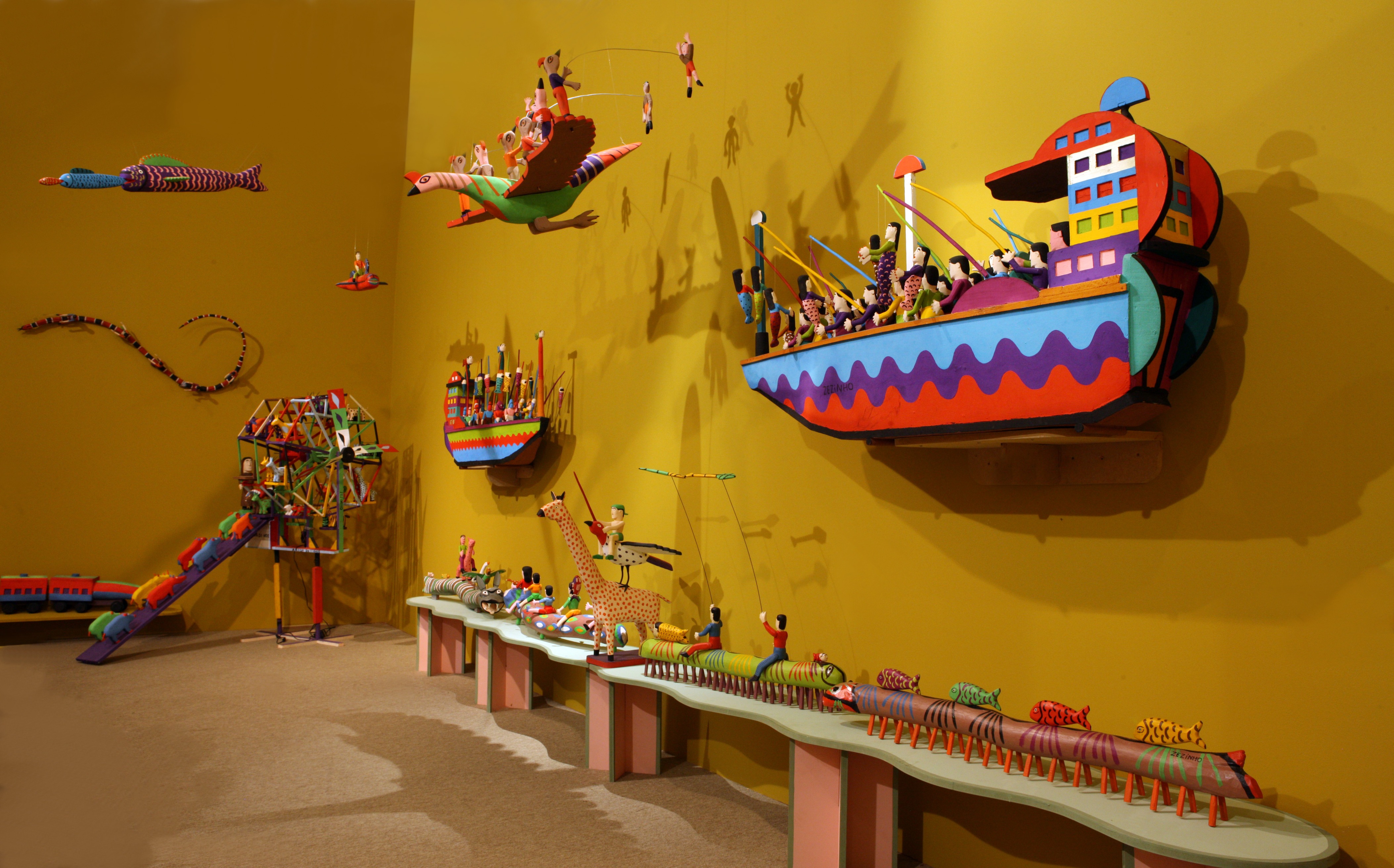 A mostra encanta a crianças e adultos pela força lúdica dos 1.500 brinquedos que a compõem e pela inventividade da criação popular. Os brinquedos