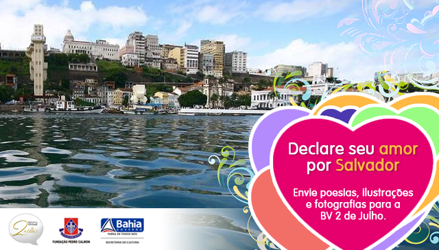 Biblioteca Virtual 2 de Julho, biblioteca temática especializada na história da Bahia, quer saber até onde vai a criatividade dos artistas de nosso país para homenagear Salvador que, no dia 29 de março de 2013, completará 464 anos. Para participar, basta enviar uma fotografia, ilustração e/ou poesia. Os trabalhos artísticos selecionados farão parte da exposição virtual em tributo à capital da Baía de Todos os Santos, na BV 2 de Julho (www.bv2dejulho.ba.gov.br), podendo também ser divulgados no site da Fundação Pedro Calmon/ SecultBA e no Facebook. Cada criação poderá ser enviada até o dia 11 de março de 2013. As poesias devem ser enviadas em formato doc. e as ilustrações com extensão JPEG/ PNG/ TIFF, com qualidade de, no mínimo, 300 DPI e arquivo superior a 500kb. Não há garantia de publicação e os trabalhos publicados não serão remunerados.