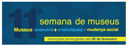 As inscrições para 11ª Semana de Museus, que antes seguiriam até o dia 22 de fevereiro, foram prorrogadas até esta quinta-feira (28). Os museus e instituições culturais interessados em participar do evento, que acontece entre os dias 13 e 19 de maio, podem garantir as suas inscrições somente através do site do Ibram. Realizado em comemoração o Dia Internacional do Museu, celebrado no dia 18 de maio, Semana de Museus este ano tem como foco central “Museus (memória e criatividade) = Mudança Social”, temática proposta pelo Conselho Internacional de Museus (ICOM), que associa dois conceitos que caracterizam o setor museal nos últimos anos. Criado em 1977 pelo ICOM, o Dia Internacional do Museu tem como objetivo sensibilizar o público sobre o papel dos museus no desenvolvimento da sociedade. Em 2012, a data contou com a participação recorde de 32 mil museus em mais de 129 países. No Brasil, o evento já contou com a participação de 1.114 museus e organizações culturais, somando 3.420 eventos entre exposições, palestras, oficinas, seminários e ações educativas, realizados em 513 cidades por todo o país. Fonte: Ascom/Ibram