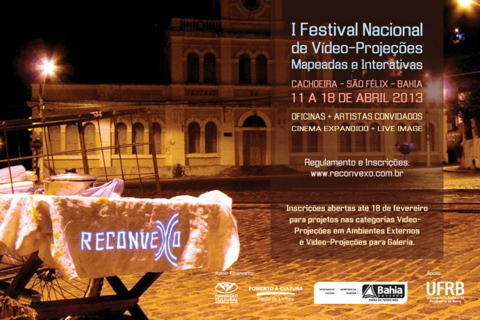 As cidades de Cachoeira e São Félix, no Recôncavo da Bahia, recebem durante uma semana, a partir desta quinta-feira, 11 de abril, e até o próximo dia 18, o Reconvexo: I Festival Nacional de Vídeo-Projeções Mapeadas e Interativas, evento que tem como foco as videoprojeções digitais interativas e suas aplicações. Videomapping e videoinstalações trazidos por artistas de diversas origens iniciam uma trajetória de intercâmbio de projetos e experiências na área. Além disso, o Reconvexo propõe resignificar espaços arquitetônicos e incentivar a criação de obras contextualizadas com a região. Na programação, totalmente gratuita, constam oficinas, palestra, videoprojeções em ambientes externos e instalações em galeria com visitas guiadas.