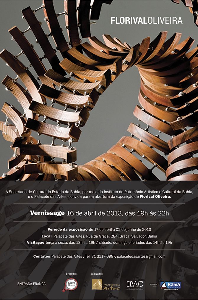O Palacete das Artes inaugura nesta terça-feira (16), às 19h, a exposição do artista plástico da “geração 70” Florival Oliveira, uma realização da Diretoria de Museus do Instituto do Patrimônio Artístico e Cultural da Bahia (DIMUS/IPAC), autarquia da Secretaria de Cultura do Estado da Bahia (Secult/BA). A mostra é composta por 160 obras, entre gravuras, objetos, desenhos e esculturas divididas em quatro instalações. O trabalho de Florival segue em cartaz no Palacete até o dia 2 de junho, com entrada gratuita.
