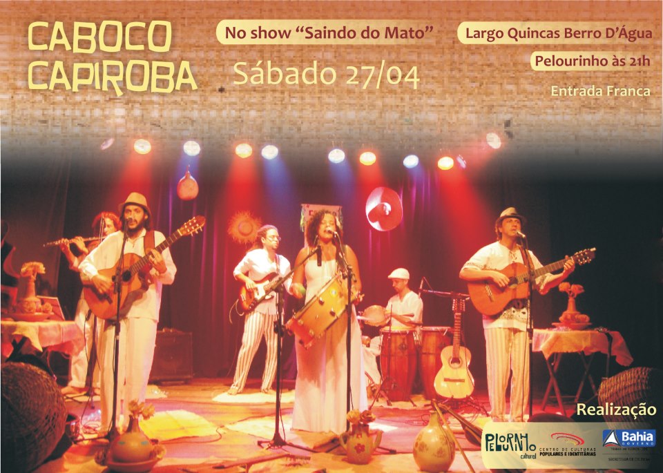 A banda Caboco Capiroba volta ao Pelourinho neste sábado (27/04) e promete repetir o sucesso da sua última apresentação no dia 12/04. O show, que tem entrada franca, terá início às 21h no Largo Quincas Berro D’água. O repertório do grupo privilegia ritmos nordestinos como xote, coco e baião, enriquecidos pela cultura do recôncavo baiano trazendo, além de canções autorais, alguns clássicos do música popular do Nordeste como Luiz Gonzaga, João do Vale, Jackson do Pandeiro, João Bá e Elomar. “Esperamos que o público lote novamente a praça e que se divirta como na última vez. Nossa aceitação no Pelourinho é maravilhosa e estamos muito contentes com isso” – comemora um dos integrantes da banda, Mario Espinheira. Caboco Capiroba se destaca pela qualidade e originalidade das composições, que se situam na tradição da música popular brasileira. O grupo é formado por Clara Miranda (vocal e zabumba); João Espinheira (vocal e violão); Mario Espinheira (vocal, viola e violão); Fernando Farias (baixo); Mauricio Muñoz (percussão); e Gabriel Campos (flauta). A direção musical é do maestro Hiran Monteiro. A apresentação é promovida pelo programa Pelourinho Cultural, projeto do Centro de Culturas Populares e Identitárias - CCPI, órgão da Secretaria de Cultura do Estado da Bahia - Secult/BA. Serviço: O que: Show da banda Caboco Capiroba Onde: Largo Quincas Berro D''água, Pelourinho Quando: 27 de abril, 21h Quanto: Entrada franca