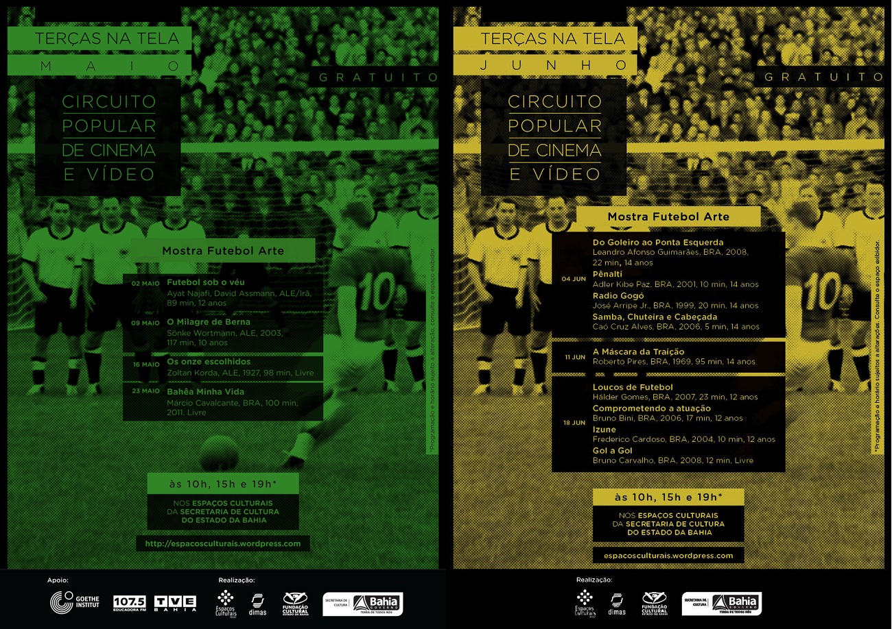 SERVIÇO Mostra “Futebol Arte” – Circuito Popular de Cinema e Vídeo De 07 de maio a 18 de junho – Às terças-feiras 10h, 15h e 19h Entrada gratuita Espaços Culturais SecultBA