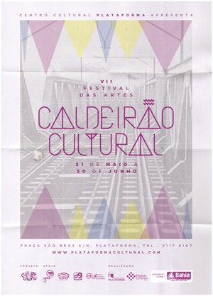 Entre 31 de maio e 30 de junho todas as artes se encontram no Centro Cultural Plataforma, em Salvador, com uma verdadeira mistura de linguagens e expressões. A sétima edição do Festival das Artes Caldeirão Cultural comemora o 6º aniversário de reabertura do maior equipamento cultural do subúrbio, trazendo um novo ingrediente: o futebol. A Copa das Confederações será celebrada dentro da programação do Caldeirão, como parte do projeto Cultura em Campo, realizado pela SecultBA. A programação conta com atividades gratuitas (entrada franca) e outras a preços populares (R$ 4 e R$ 2).