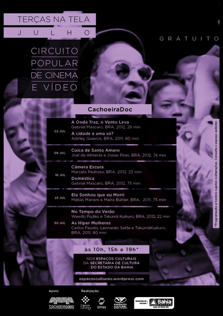 SERVIÇO Mostra “CACHOEIRADOC” – Circuito Popular de Cinema e Vídeo De 02 a 30 de julho – Todas terças-feiras 10h, 15h e 19h Entrada gratuita Espaços Culturais SecultBA