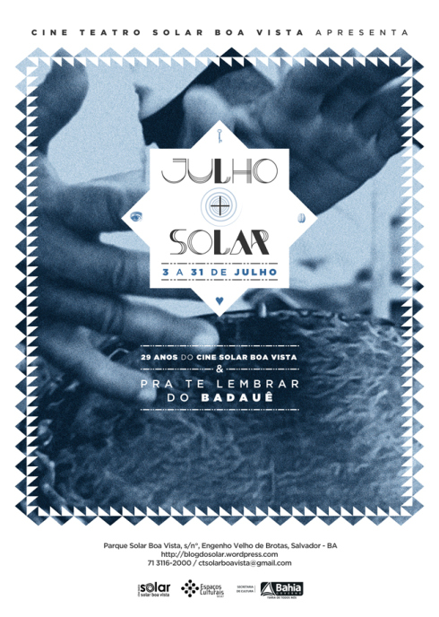 Em comemoração ao aniversário de 29 anos, o Cine Teatro Solar Boa Vista preparou 29 dias de programação gratuita e a preços populares com o Julho + SOLAR. Tendo a memória cultural do bairro do Engenho Velho de Brotas como tema, a celebração, que começa no dia 03 julho e vai até o dia 31, faz uma homenagem aos 35 anos do afoxé Badauê.