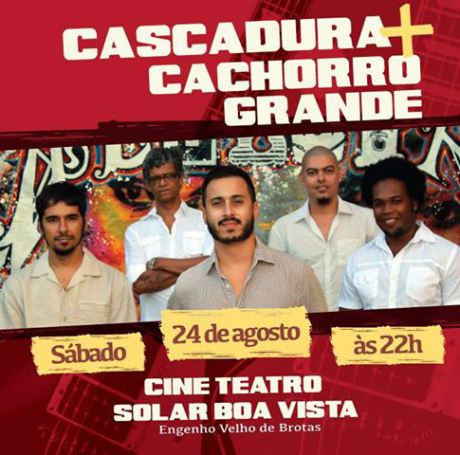 No próximo sábado, 24 de agosto, estreia o projeto Cascadura+, no Cine Teatro Solar Boa Vista, com a apresentação das bandas Cascadura e Cachorro Grande. Esse é o primeiro encontro de uma série de shows mensais que o grupo soteropolitano fará nesse espaço cultural da Secretaria de Cultura do Estado da Bahia, localizado em Brotas, entre os meses de agosto e novembro, sempre com um novo convidado. A primeira noite conta ainda com o show de abertura de Martin e Eduardo, integrantes da banda da cantora Pitty. O show começa às 22h e tem ingressos a venda nas lojas Ticketmix por R$ 50 e R$ 25 (meia), o primeiro lote; e R$ 60 e R$ 30 (meia), o segundo lote. Na ocasião os gaúchos lançam o DVD “Cachorro Grande ao Vivo no Circo Voador”, que foi muito bem recebido pela crítica, enquanto os anfitriões seguem com as músicas do disco mais recente do grupo, “Aleluia”, lançado em 2012. Os dois grupos têm uma amizade de longas datas, o que já resultou em várias colaborações, esta será a segunda vez dessa dobradinha em Salvador, que também já aconteceu em São Paulo. O vocalista da Cachorro Grande, Beto Bruno, participou do disco Aleluia do Cascadura, cantando “Sonho de Garoto”, faixa composta em parceria com Fábio Cascadura. Após a estreia com Cachorro Grande, o projeto “Cascadura +” acontece nos dias 14 de setembro, 11 de outubro e 09 de novembro, onde novos artistas serão convidados a dividir o palco com o quinteto baiano. SERVIÇO Projeto Cascadura + (Cascadura e Cachorro Grande) 24 de agosto (sábado) - 22h Ingressos: R$ 50,00 e R$ 25 (meia) - Primeiro lote R$ 60,00 e R$ 30 (meia) – Segundo lote Cine Teatro Solar Boa Vista – Parque Boa Vista de Brotas – Engenho Velho de Brotas – Salvador 71 3116 2000 | www.blogdosolar.wordpress.com