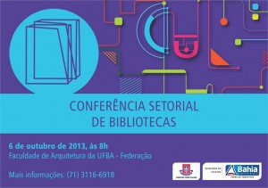 A Conferência Setorial de Bibliotecas que acontece no próximo dia 6 de outubro (domingo), das 8h às 18h, na Faculdade de Arquitetura da Universidade Federal da Bahia, vai trazer discussões importantes envolvendo o setor de Bibliotecas. Um dos debates previsto é o que envolve iniciativas em torno das novas leituras do século XXI.