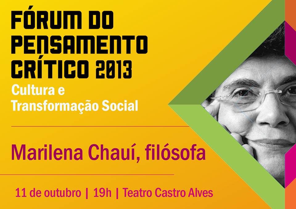 Respeitada pela obra acadêmica e pelo papel atuante nos meios intelectual e político, Marilena Chauí será a atração do Fórum do Pensamento Crítico no dia 11 de outubro, às 19 horas, no Teatro Castro Alves com entrada gratuita. A renomada filósofa e professora da Universidade de São Paulo vem a Salvador para fazer uma conferência cujo tema é “Cultura e Transformação da Sociedade Brasileira Hoje”. Além de conhecer a interpretação do mundo contemporâneo na visão da palestrante, o público terá a oportunidade de conhecer algumas vertentes de sua trajetória: de secretária municipal de Cultura de São Paulo à sua produção acadêmica e literária de ampla repercussão. Um exemplo é o livro de sua autoria, “O que é ideologia” (Ed. Brasiliense), Coleção Primeiros Passos, com mais de cem mil exemplares vendidos. Já sua tese “A nervura do real” recebeu Prêmio Jabuti de melhor livro brasileiro de Humanidades (2000) e Prêmio Sérgio Buarque de Holanda da Biblioteca Nacional de melhor livro de ensaios (1999). Recebeu ainda títulos de Doutor Honoris Causa na França e Argentina. Trajetória brilhante | Marilena Chauí é graduada em Filosofia pela Universidade de São Paulo (1965), especialização em Licenciatura pela Universidade de São Paulo (1965), mestrado em Filosofia pela Universidade de São Paulo (1967) e doutorado em Filosofia pela Universidade de São Paulo (1971), onde leciona. Tem experiência na área de Filosofia, com ênfase em História da Filosofia. Atuando principalmente nos seguintes temas: imanência, liberdade, necessidade, servidão, beatitude e paixão. O Fórum | De agosto a dezembro deste ano, a nova edição do Fórum do Pensamento Crítico vai discutir o tema “Cultura e transformação social”. Aberto à discussão pública e democrática, o evento terá pensadores renomados do país e do exterior, promovendo um amplo espaço de reflexão sobre temas atuais com palestrantes expoentes do meio intelectual brasileiro e de outros países. O evento conta com apoio da Fundação Perseu Abramo e da Faculdade de Filosofia e Ciências Humanas da UFBA, que incorporou as conferências como atividade de extensão. O próximo palestrante será o antropólogo argentino Néstor García Canclini, no dia 25 de outubro, no Teatro ISBA, em Ondina. Inscrições e mais informações: www.fpc.ba.gov.br/forum