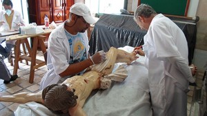 A restauração de altares e imagens na igreja de Bom Jesus de Piatã, originária do século XVIII, no município de Piatã, Chapada Diamantina, realizada pela Secretaria de Cultura do Estado (SecultBA), está sendo ampliada. Os trabalhos são realizados por especialistas de equipe multidisciplinar do Instituto do Patrimônio Artístico e Cultural da Bahia (IPAC), vinculado à Secult-BA. A ampliação dos serviços se deve à importância do acervo artístico e arquitetônico da Igreja Matriz e da Capela do Rosário, ambas na cidade, que já têm tombamentos provisórios do Estado como Patrimônios Culturais da Bahia desde 2002. Na Matriz, foram descobertas pinturas singulares do ‘barroco popular’, das quais não se sabia da existência, além de itens originais do século XIX em imagens sacras. A comunidade e a paróquia local incentivaram as novas ações do IPAC na região. “Desde abril do ano passado (2012), quando iniciamos as restaurações, trabalhamos mais que o previsto. Mantivemos técnicos e marceneiros, em revezamento, para garantir a realização”, explica o diretor de Projetos e Obras (Dipro) do IPAC, Paulo Canuto. As intervenções atingem três igrejas de Piatã, cidade do centro-sul baiano, a 572 km de Salvador. Além de dois altares laterais e dois colaterais na de Bom Jesus, e 10 imagens restauradas, a SecultBA/IPAC realiza intervenções na Capela do Rosário. Na de Bom Jesus, foram restaurados cancelos em madeira e um arcaz (arca com gavetões) da sacristia, removidas oxidações e impurezas inorgânicas de tocheiras (grandes castiçais para tochas), recuperadas esquadrias e o baldaquino (dossel em colunas) da fachada. Foram beneficiadas 10 imagens sacras com suportes em gesso, madeira e pedra, policromadas ou douradas. Na Igreja de Catolés, foi escorado altar-mor, reforçadas esquadrias, realizada análise técnica e reunião comunitária. CUIDADO e EDUCAÇÃO – “O processo de restauração é longo e necessita de cuidado. Fazemos limpeza, fixação de estratos, remoções, recomposição das faltas, reintegração da policromia, douramento, aplicação de verniz, dentre outras ações”, ressalta Rozelita Sá Barreto, uma das restauradoras, juntamente com os restauradores Claudio Brito, Bruno Visco e Célia Moura. Foram beneficiadas duas portas e quatro janelas das sacristias da Igreja do Rosário, com desmontagem, limpeza, retirada de oxidados, recomposição e colagem, além de contenção emergencial na Igreja do Catolé, onde uma das imagens também foi restaurada. Durante as obras, foram feitas visitas da comunidade local, seminaristas e estudantes guiados por restauradores do instituto. “O restauro de bens artísticos responde à missão do IPAC, de preservação do patrimônio cultural. A comunidade de Piatã acompanhou as ações com grande interesse”, lembra a coordenadora de Restauro de Elementos Artísticos (Cores) do IPAC, Milena Tavares. DESCOBERTAS e BARROCO POPULAR – Na imagem de Nossa Senhora da Soledade, foram encontrados no peitoral da peça um jornal de 1898 e um tecido bordado em seda e fios com lâminas supostamente de ouro e prata. Os objetos estão em processo de planificação e acondicionamento para preservá-los. “Os altares da Igreja de Bom Jesus têm características em estilo ‘barroco popular’, bem raro no Brasil. Os elementos são diferentes dos existentes nas igrejas barrocas do país”, informa a subcoordenadora de Restauro do IPAC, Káthia Berbert. A igreja de Piatã tem querubins, anjos, atlantes (figuras masculinas) e cariátides (femininas) com fisionomia nordestina, representando a população local. “Na ornamentação, encontramos aves e frutas típicas da região”, alerta a restauradora. O IPAC encaminhará ao Conselho Estadual de Cultura (CEC) os dossiês para consolidação dos tombamentos dos imóveis com seus bens artísticos integrados. “Nas obras, o IPAC disponibilizou especialistas, material artístico, equipamentos de segurança e formação de ateliê, enquanto a Paróquia cedeu madeiras e logística local”, comenta o diretor de Obras, Paulo Canuto. Mais informações na Cores/IPAC, via telefone (71) 3117-6387 e endereço cores.ipac@ipac.ba.gov.br.