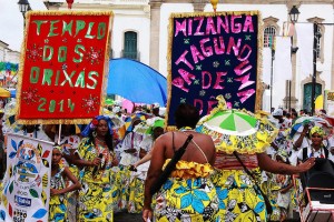 Já o Conexão Tribal, bloco do Pelourinho, o destaque é da ala de dançarinos. Animados, os jovens fizeram os foliões imitarem seus passos ensaiados, ao som da banda de percussão. No desfile do bloco Templo dos Orixás, a alegria nas cores e a ala das baianas ficaram em evidência e chamaram a atenção do público que assista ao desfile.