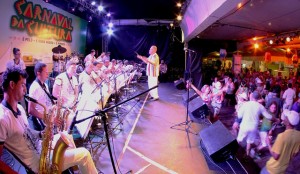 A Orquestra Fred Dantas abriu a noite deste sábado (01) no Largo Pedro Archanjo com repertório dedicado às marchinhas. A atração reuniu um público diversificado, entre crianças fantasiadas e fãs da velha guarda. Dentre eles estavam o casal Angélica e Rômulo Correia que já acompanham a Orquestra há muitos carnavais. “Sempre separamos um dia de carnaval para vir ao Pelô. Ele que é mais carnavalesco, é um pernambucano que há dez anos curte o carnaval da Bahia”, entregou Angélica diante do animado companheiro.