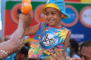 O primeiro a desfilar na Avenida na tarde deste domingo foi o bloco Ibeji, trazendo a criançada ao som do grupo de pagode Nossa Juventude. O sol forte e a multidão não impediu os pequenos de brincar junto a suas famílias, formando um cordão de 2000 foliões celebrando o tema “Maracatu e Folia de Reis”. À frente do bloco, comandando os passos infantis, estavam America Sampaio (16) como a Rainha Estandarte, o Rei Momo Mirim, David Lis, de 10 anos, e os Rei e Rainha Maracatu, Derek Mates (5) e Laura Marta (11), respectivamente.