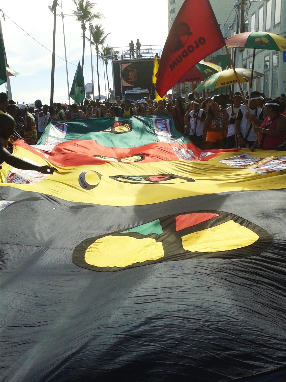 O desfile nem havia começado e a estudante Mari Carvalho, estreando o seu abadá, sentia arrepios ao lado do trio elétrico. “Ah, acho que é o batuque, que aflora a emoção de ser baiana, porque o Olodum é tudo, é a alegria de viver aqui. E com essa brisa é bom demais apesar de que sendo Olodum, pode ser na Barra, no Campo Grande, no Pelô, tudo vale”.