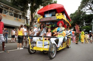 O Rixô Elétrico voltou às ruas nesta segunda-feira de carnaval, desta vez no circuito Dodô (Barra/Ondina). O quadriciclo estilizado arrancou olhares curiosos, sorrisos e muitos pulos do folião pipoca. Guiado por seu idealizador, o compositor, guitarrista e bandolinista baiano Fred Menendez, e os músicos Shafiek Patriarca (bateria), Eduardo Brandão (violão) Fábio Rocha (baixo) e Eleilson Amorim (teclado), todos vestidos como pede a ocasião: com fantasias loucas e coloridas, o Rixô Elétrico espantou a chuva com muito frevo, axé e lambada.