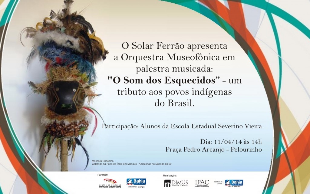 Em comemoração ao mês do índio, a Orquestra Museofônica (DIMUS/IPAC) e os alunos do Colégio Estadual Severino Vieira fazem a apresentação da palestra musical coreográfica Som dos Esquecidos, na Praça Pedro Arcanjo (Pelourinho), em 11/04, às 14h. Este tributo aos povos indígenas do Brasil é uma realização do Solar Ferrão que, em parceria com Centro de Culturas Populares e Identitárias e a Secretaria de Educação, pretende propor uma reflexão sobre a contribuição dos índios para a nossa cultura. Para isso, foram convidados os alunos e professores das escolas do Pelourinho. O evento é gratuito e aberto ao público. Responsável pela maior coleção de instrumentos musicais dos índios no Brasil, a etnomusicóloga Emília Biancardi (que rege a orquestra) informou que vai mostrar como a cultura musical indígena nunca foi levada a sério. “Temos exceções, mas no geral as pessoas esquecem que, quando os povos invasores chegaram no Brasil, e depois os negros, os índios já tinham seus instrumentos musicais, já tinham suas músicas e danças. Queremos transmitir esse conhecimento e, por isso, esse projeto chama-se Som dos Esquecidos”, explica Emília. Na palestra especial serão apresentados alguns instrumentos e duas manifestações musicais coreográficas: a dança dos kamaiurás (habitantes do Parque Indígena do Xingu, onde Emília morou por algum tempo) e a dança do toré (proveniente dos índios do Nordeste brasileiro). Nessas manifestações, os alunos dançam, cantam e tocam as maracás (chocalho indígena feito de uma cabaça seca, sem miolo, na qual se colocam pedras ou sementes) que aprenderam a fazer nos encontros com Emília no Solar Ferrão (Pelourinho). Além disso, a Orquestra Museofônica vai apresentar uma reinterpretação da forma aculturada da História da Mãe do Vento – uma das manifestações musicais que os índios da Amazônia criaram a partir dos sons da floresta. A diretora da DIMUS (Diretoria de Museus do Instituto do Patrimônio Artístico e Cultural), Ana Liberato, explicou que esta apresentação é um bom exemplo da parceria existente entre a Secretaria de Cultura e a Secretaria de Educação do Estado da Bahia. “Nosso objetivo é aproximar o conhecimento existente nos museus das escolas e seus alunos, sempre de forma didática”, acrescentou. Orquestra Museofônica A Orquestra Museofônica é uma proposta pedagógica musical idealizada pela Diretoria de Museus do Instituto do Patrimônio Artístico e Cultural (DIMUS/IPAC), Ana Liberato, tendo como referencia a Coleção de Instrumentos Musicais Tradicionais Emília Biancardi. É composta por cerca por 30 integrantes, funcionários atuantes nas instituições museais e no IPAC, além de músicos convidados. Os instrumentos utilizados nas apresentações são provenientes das viagens de Emília por terras africanas, indígenas, orientais e europeias. Todo o acervo foi doado ao Governo do Estado da Bahia e encontra-se no Solar Ferrão, localizado no Pelourinho. Serviço: Palestra musical coreográfica Som dos Esquecidos Data e horário: 11/04, às 14h Local: Praça Pedro Arcanjo Informações: (71) 3116-6740 (Solar Ferrão) REALIZAÇÃO: SOLAR FERRÃO/ DIMUS/IPAC/SECULT-BA Yara Vasku Jornalista DRT/PR 2904 Dimus – Diretoria de Museus – BA (71) 3117-6445/ 9119-7746 Núcleo de Comunicação Diretoria de Museus do Instituto do Patrimônio Artístico e Cultural da Bahia Palácio da Aclamação Avenida 7 de Setembro, 1.330, Campo Grande – Salvador/BA - CEP 40.080.001 dimusbahia.wordpress.com twitter.com/museusdabahia facebook.com/museusdabahia