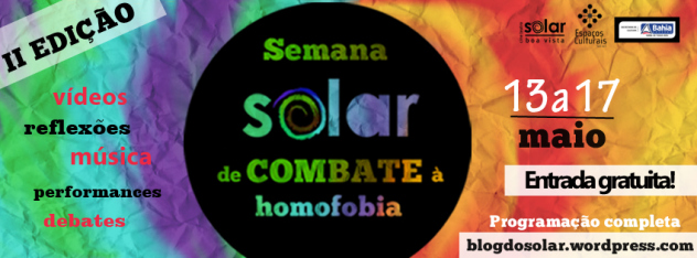 Acontece, de 13 a 17 de maio a Semana Solar de Combate à Homofobia