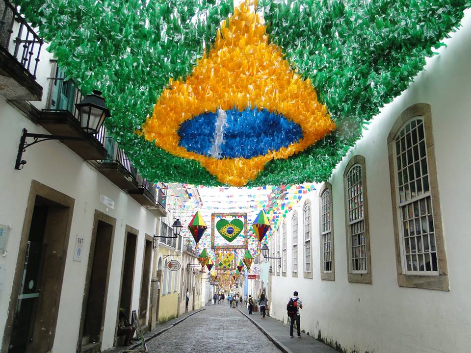 Decoração do Pelourinho, no Centro Histórico, celebra a Copa do Mundo e a aproximação do São João. Foto: Tacila Mendes.