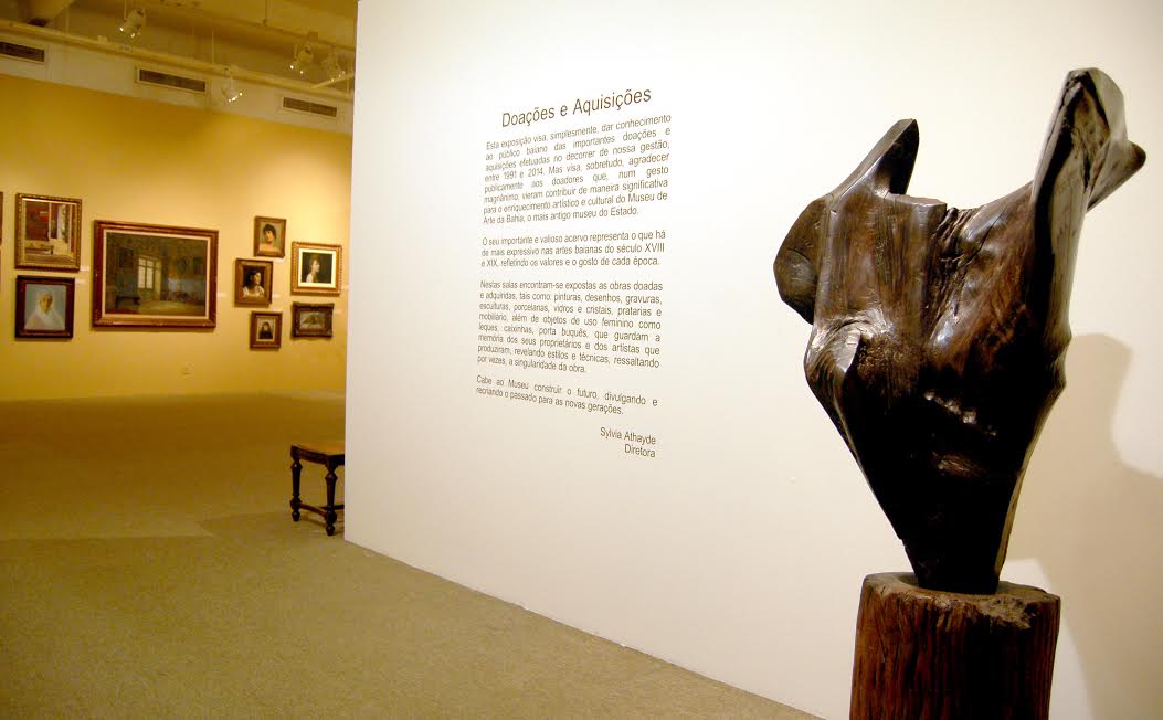 O Museu de Arte da Bahia abriu na última terça (10) a exposição “Doações e Aquisições”, que visa mostrar ao público baiano as importantes doações e aquisições efetuadas entre 1991 a 2014. “Esta mostra é um agradecimento aos doadores que, num gesto magnânimo, contribuíram de maneira significativa para o enriquecimento artístico e cultural do MAB”, ressalta a diretora Sylvia Athayde.