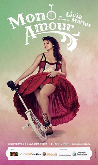 ‘Mono Amour’ é o espetáculo que a artista Lívia Mattos apresentará no palco do Cine Teatro Solar Boa Vista, dia 19, a partir das 20h, com entrada franca. A artista une música aos elementos circenses, com o objetivo de pensar o circo de maneira mais transversal e contemporânea. O espetáculo foi criado a partir de pesquisas sobre o universo circense. Assim, ela utiliza no palco elementos como acordeom, monociclo e movimentações acrobáticas para traduzir o mergulho amoroso, o feminino e o vai e vem da vida – em foles e rodas. A leveza de movimentos, representa os trânsitos de dentro pra fora, do intimo para o compartilhado. A encenação circense dura quinze minutos e marca o retorno de Lívia à criação com o corpo. Após a performance, a artista abre espaço para um bate-papo sobre sua trajetória artística e elementos que a levaram à criação do projeto. Serviço O quê: Mono Amour Onde: Cine Teatro Solar Boa Vista Quando: Quinta-feira (19), às 20h Quanto: Gratuito