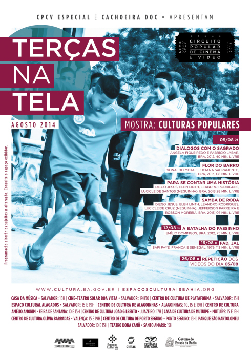 O Circuito Popular de Cinema e Vídeo está cheio de novidades. Em parceria com a Bienal da Bahia, a Sessão Especial “Culturas Populares” conta com vasta e diversificada programação. Durante as terças feiras, Os Espaços Culturais exibem uma série de filmes que compõem o IV Festival de Documentários de Cachoeira, o CachoeiraDoc.