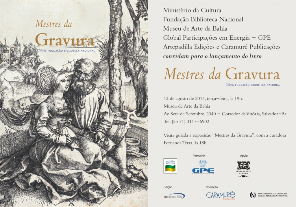 A Fundação Biblioteca Nacional (FBN) possui uma coleção de gravuras avulsas com mais de 30 mil itens. Cento e setenta e uma obras do Renascimento ao Iluminismo foram selecionadas para representar parte desse valioso patrimônio cultural brasileiro no livro “Mestres da gravura: Coleção Fundação Biblioteca Nacional”. A obra será lançada no dia 12 de agosto, às 19h, no Museu de Arte da Bahia. Antes do lançamento, será realizada às 18 horas, uma visita guiada pela exposição “Mestres da Gravura”. O livro traz a oportunidade de conhecer um pouco sobre a Fundação Biblioteca Nacional, considerada pela UNESCO uma das dez maiores do mundo, com obras raras inigualáveis no país, incluindo uma inestimável coleção de gravuras. O conteúdo privilegia o núcleo inicial da coleção de avulsas e as técnicas de gravura desenvolvidas até o século XVIII. Esse conjunto remonta a Real Biblioteca Portuguesa, trazida por ocasião da transferência da Corte para o Rio de Janeiro, em 1808. Vinte imagens do conjunto foram restauradas como parte do projeto. As obras que compõe esta publicação são de 78 gravadores que traduzem, com sensibilidade e destreza, a construção do pensamento filosófico e religioso, as ideias, os costumes e as descobertas promovidas pela cultura europeia ao longo dos séculos. O conjunto reproduzido inclui obras originais, criadas por renomados artistas da história da arte que exploram os recursos das técnicas de gravura e gravuras de reprodução ou de interpretação, realizadas por artistas com amplo domínio técnico que reproduzem obras-primas como pinturas, esculturas, desenhos e afrescos. Estão presentes tanto xilogravuras, exemplos da mais antiga técnica de gravar sobre papel, quanto variadas técnicas de gravação em metal. A concepção do projeto, pesquisa e seleção de obras é de Fernanda Terra, curadora, historiadora de arte e mestre em Museologia e Patrimônio na Divisão de Iconografia da Biblioteca Nacional. Segundo Fernanda, estas obras “integram o mais importante acervo de gravuras do país. Trata-se, pois, de rara oportunidade de apreciar parte significativa do valioso patrimônio cultural brasileiro”. As gravuras foram pesquisadas e selecionadas com um breve histórico de cada gravador, subdividas em oito coleções e organizadas por ordem cronológica de nascimento dos artistas. Além disso, o leitor encontrará também os artigos “Mestres da gravura: Coleção Biblioteca Nacional”, resultado da pesquisa de Fernanda Terra e “Breve história da biblioteca: entre livros e símbolos”, escrito pela historiadora Lilia Moritz Schwarcz. A obra inclui ainda um texto do Presidente da FBN Renato Lessa: “Manter o passado no futuro”, e por fim, um texto da Divisão de Iconografia, assinado por Monica Carneiro Alves e Monica Velloso Azevedo: “A Iconografia na Biblioteca Nacional”. A publicação é uma edição da Artepadilla e coedição da Caramurê Publicações e da Fundação Biblioteca Nacional. Patrocínio é do grupo baiano, Global Participações em Energia – GPE através da Lei Rouanet/ Lei de Incentivo à Cultura do Ministério da Cultura. O grupo Global vem investindo em publicações desde 2005 patrocinando projetos editoriais na área de história e artes plásticas. Segundo o diretor da organização Juliano Mattos, “a GPE acredita que o apoio à cultura contribui decisivamente para o desenvolvimento da sociedade e suas transformações”. Este projeto editorial inaugurou uma parceria entre a editora Artpadilla do Rio de Janeiro e a Caramurê Publicações, de Salvador que é uma das co-editoras. Segundo Fernando Oberlaender, editor da empresa baiana, “Mestres da Gravura foi uma experiência de parceria maravilhosa que só nos trouxe alegrias e um resultado excepcional”. Lançamento do livro "Mestres da Gravura: Coleção Fundação Biblioteca Nacional" e visita guiada com a autora. Quando: 12 de agosto, terça-feira Horário: Lançamento às 19h e visita guiada às 18h Onde: Museu de Arte da Bahia - Av. Sete de Setembro, 2340 - Vitoria, Salvador - BA Informações: (71) 3117-6902 Locais de venda do livro: Livraria Saraiva e Livraria Leitura