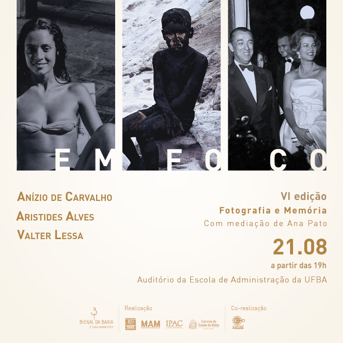 Com mediação de Ana Pato, curadora-chefe da 3ª Bienal da Bahia, o tema trata da função da fotografia como construtora de memória. No debate, será discutida a necessidade de uma política pública que cuide destes acervos. Anízio Carvalho, Valter Lessa e Aristides Alves são os fotógrafos convidados e testemunhos vivos da história de Salvador.