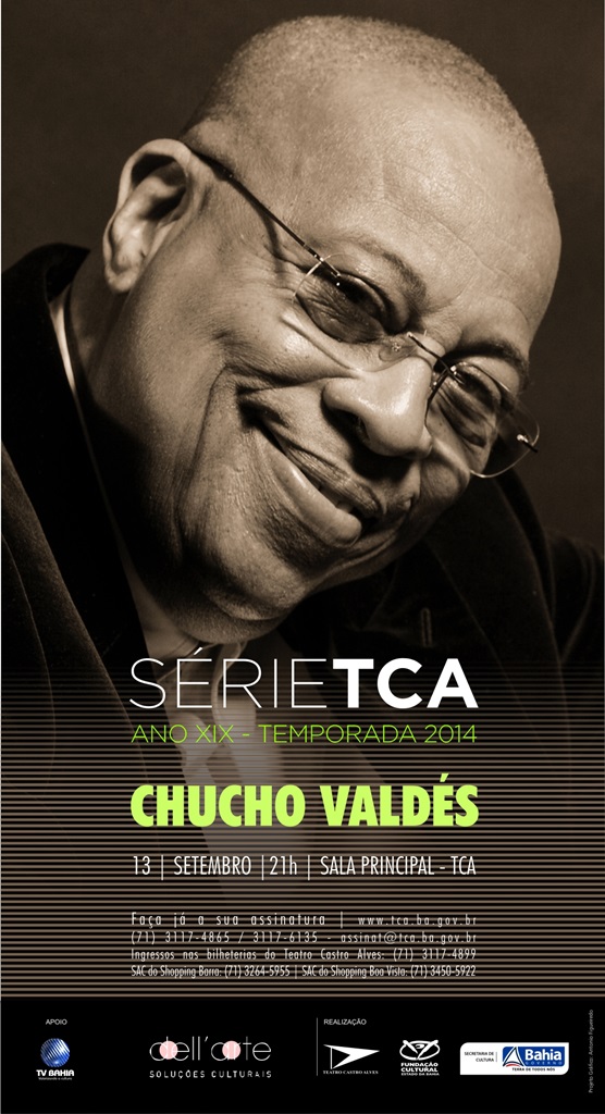 Consagrado pianista, compositor, arranjador e bandleader, o cubano Chucho Valdés chega à capital baiana este mês para uma apresentação única que integra a programação da SÉRIE TCA 2014. O artista se apresenta no dia 13 de setembro (sábado), às 21h, na Sala Principal do TCA. O pianista é a 5ª atração desta nova temporada de grandes concertos no palco do Teatro Castro Alves. Vencedor de cinco Prêmios Grammy e de três Grammy Latinos, o artista é considerado um dos nomes mais influentes no moderno Jazz Afro-Cubano. Os ingressos para este encontro especial já estão à venda e custam R$ 140/R$ 70 (filas A a P); R$ 110/R$ 55 (Q a Z) e R$ 80/R$ 40 (Z1 a Z11). Adquira seu ingresso nas bilheterias do TCA, pelo telefone (71 2626-5071) ou ainda pela internet, através do site Compre Ingressos/TCA. Nesta apresentação inédita em Salvador, ele mostra as músicas do seu trabalho mais recente, Border-Free, composto por oito faixas — sendo sete delas inéditas — e que é mais um exemplo da sua busca musical, onde os limites convencionais de estilos e tradições se fundem. Em 2012, reorganizou sua antiga banda, a Afro-Cuban Messengers, integrada por Yaroldy Abreu (percussão), Dreiser Durruthy Bombalé (tambores e voz), Reinaldo Melián (trompete), Gastón Joya (baixo) e Rodney Barreto (bateria). É esta formação que o acompanha neste show único e inédito em Salvador. A Série TCA é uma realização do Teatro Castro Alves, através da Fundação Cultural do Estado da Bahia (Funceb) e Secretaria de Cultura do Estado da Bahia (SecultBA). CHUCHO VALDÉS – Nascido em Quivicán, na província de Havana, em Cuba, Dionisio Jesús “Chucho” Valdés Rodríguez pertence a uma família de músicos. Seu pai, o consagrado pianista e compositor Ramón “Bebo” Valdés, e sua mãe Pilar Rodriguéz, que cantava e também tocava piano, foram seus primeiros professores. “Meu pai ensinou-me tudo sobre música cubana, sul-americana, jazz e ainda como trabalhar com uma orquestra”, relembra. Com apenas três anos, Chucho já tocava ao piano, com ambas as mãos, em qualquer registro, as músicas que ouvia no rádio. Aos cinco começou a estudar com o maestro Oscar Muñoz Boufartique. Prosseguiu os estudos no Conservatório Nacional de Música de Havana onde se formou aos 14 anos. Com 17 já trabalhava como pianista profissional. Em 1972, fundou uma das mais famosas bandas de Latin Jazz de seu país: o grupo Irakere. SERVIÇO: CHUCHO VALDÉS – SÉRIE TCA 2014 Local: Sala Principal do TCA (Campo Grande, s nº/2626-5071) Data: 13 de setembro (sábado). Horário: 21h Ingressos: R$ 140/R$ 70 (filas A a P); R$ 110/R$ 55 (Q a Z) e R$ 80/R$ 40 (Z1 a Z11). BILHETERIAS TCA: Teatro Castro Alves: segunda a sábado, das 10h às 22h; domingo, das 9h às 21h. SAC do Shopping Barra: segunda a sexta, das 10h às 17h; sábado, das 8h às 12h. SAC do Shopping Bela Vista: segunda a sexta, das 10h às 17h; sábado, das 8h às 12h. Você também pode comprar pela internet: Compre ingressos ou site do TCA Call Center (vendas e informações): (71) 2626-5071