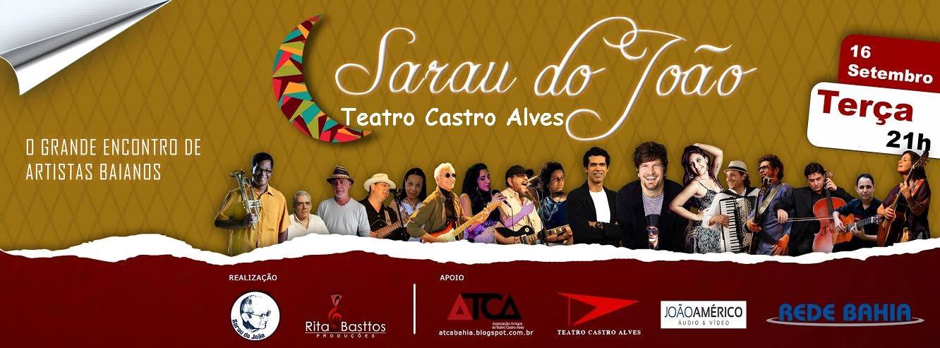 SERVIÇO Sarau do João – O Grande Encontro de Artistas Baianos Dia 16/09/2014, 21hr. Local: Teatro Castro Alves – Foyer e Sala Principal Endereço: Praça Dois de Julho, s/n, Campo Grande Telefone: (71) 3535-0600 Ingresso: R$40,00 (inteira) - vendas online no site do TCA