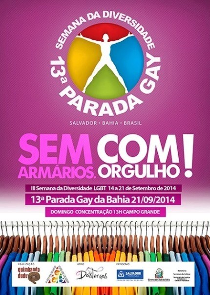 Começou no último domingo (14), com a 1ª Paradinha Gay do Tororó, a III Semana da Diversidade. O projeto, que tem neste ano o tema “Sem Armários. Com Orgulho!”, continua com atividades diversas até o próximo domingo, 21 de setembro, quando acontece a 13ª Parada Gay da Bahia. Realização do Grupo Gay da Bahia (GGB) e do Grupo Quimbanda Dudu, pelo terceiro ano consecutivo a Semana da Diversidade tem entre seus apoiadores a Secretaria de Cultura do Estado da Bahia (SecultBA), que promove dois dias de programação artística em diferentes palcos do projeto. O investimento da SecultBA é de R$ 40.500,00.