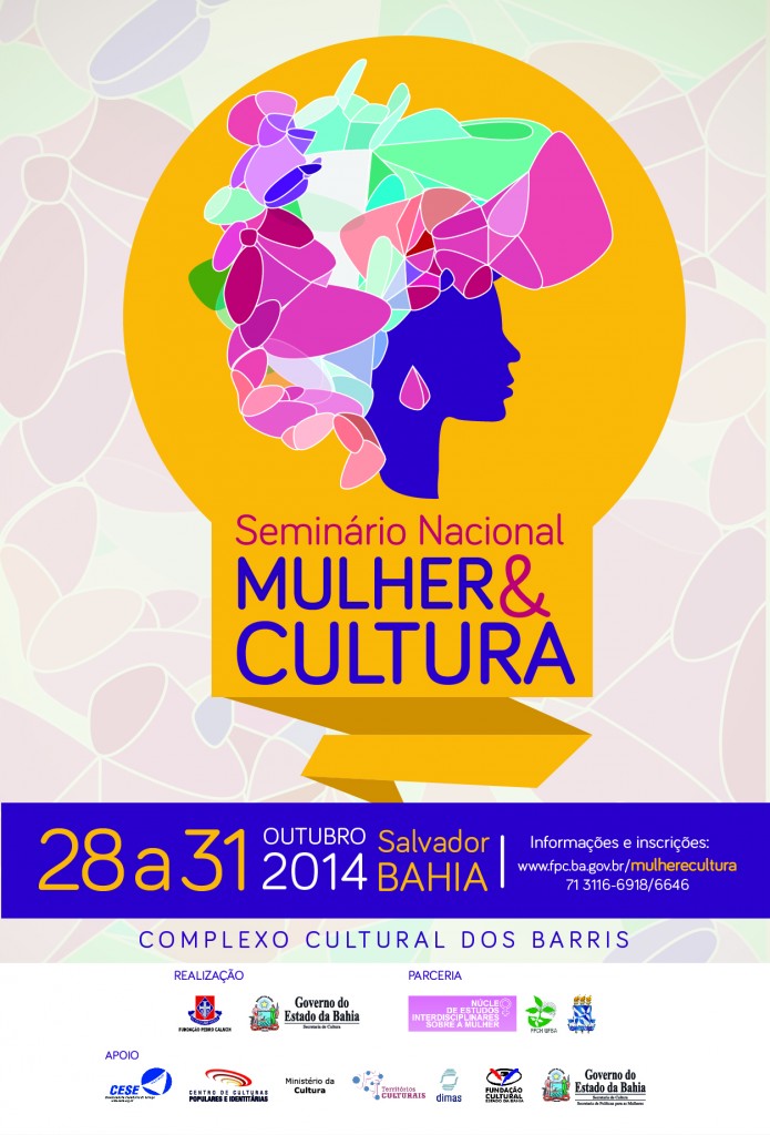 - Confira a programação completa 1º dia | Seminário Nacional Mulher e Cultura 28 DE OUTUBRO (TERÇA-FEIRA) Local: Quadrilátero da Biblioteca Pública do Estado (Barris) 19h: SOLENIDADE DE ABERTURA 20h - Apresentação Teatral “Vozes Negras” (Bando de Teatro Olodum) 2º dia | Seminário Nacional Mulher e Cultura 29 DE OUTUBRO (QUARTA-FEIRA) Local: Sala Walter da Silveira 8h CREDENCIAMENTO 10h CONFERÊNCIA DE ABERTURA Tema: Mulher: Tradição e Contemporaneidade A linha evolutiva da atuação das mulheres. A expansão da presença feminina de forma ativa, não somente nas expressões artísticas e meios de comunicação tradicionais, como também no âmbito das novas tecnologias de informação, nas lutas políticas e sociais. 14h – MESA DE DEBATE 01 Tema: Mulheres da Cultura Trajetórias de mulheres em diferentes regiões do país, realizadoras e empreendedoras em cultura que alcançaram visibilidade e notoriedade nacional e internacional por suas produções. 3º dia | Seminário Nacional Mulher e Cultura 30 DE OUTUBRO (QUINTA-FEIRA) Local: Sala Walter da Silveira 8h  - MESA DE DEBATE Tema: Mulher, Cultura e Comunicação Levantar a temática do protagonismo da mulher em meio às variadas expressões culturais nos veículos midiáticos de massa, além de abordar o diferencial desta contribuição para o universo da comunicação contemporânea. 14h MESA DE DEBATE Tema: Mulheres e Conhecimentos Tradicionais O debate trará a contribuição feminina na manutenção e transmissão de conhecimentos tradicionais culturais, tais como o manejo de recursos naturais e a manifestação da oralidade. Serão expostos exemplos da diversidade de origens e formação dessas mulheres, que contribuem para a preservação do patrimônio cultural imaterial do país. 4º dia | Seminário Nacional Mulher e Cultura 31 DE OUTUBRO (QUARTA-FEIRA) Local: Sala Walter da Silveira 8h  - MESA DE DEBATE Tema: Cultura e Contemporaneidade Promover diálogo sobre a contribuição feminina na construção do ideal contemporâneo, a partir dos pontos de vista diferenciados de mulheres que desafiaram o tempo e seus contextos políticos. RODAS DE DIÁLOGOS  - 14h Local: 3º andar da Biblioteca Pública do Estado (Barris) Mulheres nas artes contemporâneas Ações feministas nas Comunicações Experiências feministas na cultura e saberes tradicionais Relatos de Feminismos e Sexualidades Feminismos e Corporalidades 19h - Show de Encerramento na Praça Tereza Batista (Pelourinho)