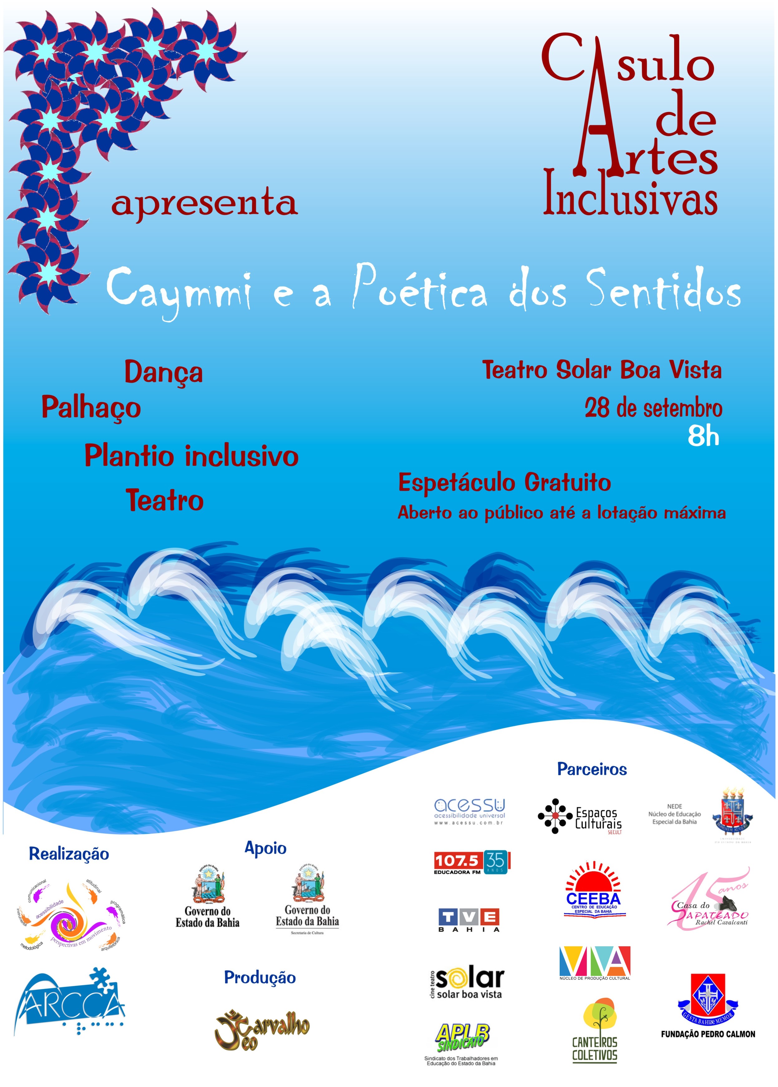 Esta será mais uma oportunidade para assistir o espetáculo “Caymmi e a Poética dos Sentidos”, do Projeto Perspectivas em Movimento: A Reinvenção da Diferença, que atua para e pelos direitos das pessoas com deficiência, oferecendo curso gratuito de teatro, dança e palhaços para pessoas com deficiência, pais ou responsáveis, professores e estudantes universitários. Contemplado em edital de Formação e Qualificação em Cultura o projeto recebeu o apoio da Secretaria de Cultura do Estado da Bahia e apresentou como produto final em maio o espetáculo interdisciplinar (teatro, dança, palhaços), homenageando Dorival Caymmi.