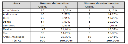 NÚMERO DE INSCRITOS E SELECIONADOS POR ÁREA