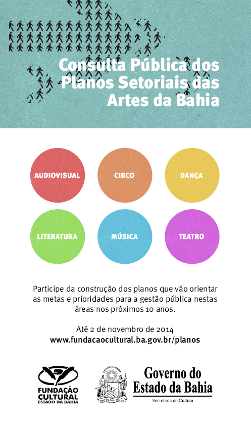 Cinco representantes do Conselho Estadual de Cultura (CEC) foram nomeados nesta terça-feira, 28, como membros da comissão responsável pela análise das minutas dos Planos Setoriais das Artes. Esses documentos estabelecem metas, prioridades, estratégias e objetivos específicos para os próximos 10 anos na gestão pública dos setores do audiovisual, circo, dança, literatura, música e teatro. A criação da comissão está publicada na edição desta terça-feira do Diário Oficial, na resolução nº 09/2014. Fazem parte dela a conselheira Lia Robatto, que presidirá os trabalhos, além dos conselheiros Aurélio Schommer, Antonio Luiz Morais de Andrade (Almandrade), Aderbal Duarte e Carlos Santos de Carvalho (Carlinhos Cor das Águas). Como secretária oficial foi nomeada a diretora interina do CEC, Isamar de Oliveira. >> Clique aqui e leia a resolução A comissão avaliará os documentos para que, após a aprovação, sejam encaminhados à Secretaria de Cultura do Estado (SecultBA). Os Planos Setoriais das Artes foram construídos pelos Colegiados Setoriais das Artes da Bahia, entidades cuja coordenação executiva é realizada pela Fundação Cultural do Estado da Bahia (Funceb). Criados com base na Lei Orgânica da Cultura da Bahia (nº 12.365/2011), os Colegiados Setoriais são uma representação da sociedade civil na gestão cultural. Sua missão é orientar e respaldar decisões políticas voltadas a cada área, atuando como instâncias de consulta, participação e controle social das ações promovidas pelo poder público. Qualquer cidadão que deseje contribuir na construção dos Planos Setoriais das Artes pode acessar a página da Funceb (www.fundacaocultural.ba.gov.br) e deixar sua sugestão até o dia 2 de novembro.