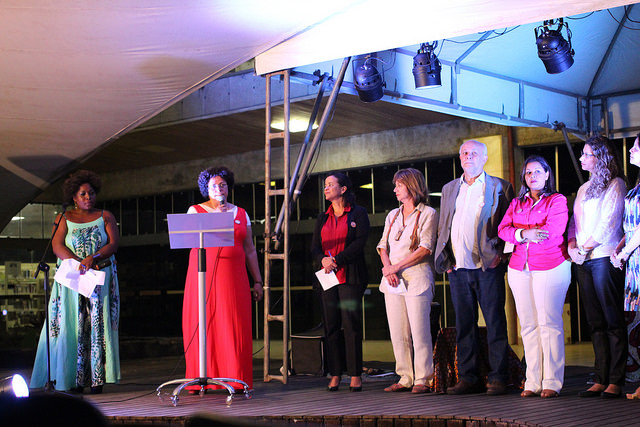 [caption id="attachment_53947" align="aligncenter" width="448" caption="Foto: Jamile Coelho"][/caption] De forma descontraída e animada, mas com mensagens de força, resistência e luta, mulheres de todos os lugares do Brasil participaram das apresentações culturais que marcaram nesta terça-feira (28), a abertura oficial do Seminário Nacional Mulher e Cultura, que acontece em Salvador até a próxima sexta-feira (31). Com temas diversos, a exemplo de Comunicação, Saberes Tradicionais, Contemporaneidade, dentre outros, o Seminário reuniu, no  Quadrilátero da Biblioteca Pública do Estado (Barris), artistas, gestoras públicas, militantes, pensadoras, pesquisadoras femininas, representando comunidades indígenas, ciganas, negras, LGBT e pessoas interessadas no debate sobre o protagonismo da mulher na área da cultura. Com expressiva participação feminina, o público recebeu as boas vindas da diretora da Fundação Pedro Calmon, Fátima Fróes, que ressaltou a importância “da criação de um espaço de interação entre diferentes agentes femininos de cultura do Brasil. A mulher é um agente propulsor fundamental neste segmento e temos como base a consolidação destes espaços de diálogo com os movimentos femininos do nosso estado e, com este Seminário, queremos que esta rede se amplie para todo o país. Temos aqui representações de todos os estados brasileiros e isso já é um marco significativo”. O secretário da Cultura do Estado, Albino Rubim, destacou a necessidade de fortalecer os diálogos com os movimentos populares, sociais, de mulheres, considerando que a democratização não pode avançar sem os movimentos conversarem, colaborarem e cobrarem do governo ações efetivas. “Nosso desafio é refletir, reformular e ampliar políticas de fortalecimento em favor das mulheres, que, sem dúvida, ainda é visivelmente subrepresentada na política. Contudo, não teremos transformações se não ampliarmos as ações no campo da cultura, pois só assim seremos um país desenvolvido, a partir da mudança de valores”, disse. Representando a ministra da Cultura Marta Suplicy, a secretária de Cidadania e Diversidade Cultural do Ministério da Cultura, Marcia Rolemberg, considerou o Seminário Nacional Mulher e Cultura um momento de avanço e força no seguimento da cultura. “É a oportunidade de avançarmos e fortalecermos as questões de gênero, extraindo desse encontro conclusões para fomentar temáticas voltadas para mulheres, levando a bandeira feminina para todos os cantos da sociedade, ampliando a oportunidade de trocarmos experiências e construirmos uma nova história para nosso pais”, enfatizou. Entre as autoridades que compuseram a solenidade de abertura, estiveram ainda a assessora parlamentar Maria Helena Souza da Silva, representando a senadora Lídice da Mata; a chefa de gabinete da Secretaria de Políticas para as Mulheres (SPM-BA), a Adriana Marmori; a diretora executiva da Coordenadoria Ecumênica de serviços, Sônia Gomes Mota e a assessora da Secretaria Estadual de Comunicação. Apresentações Culturais Reunindo ícones da dramaturgia negra baiana, as atividades seguiram com a apresentação do recital “Vozes Negras”, encenado por atrizes do Bando de Teatro Olodum, uma homenagem a poetas negros e uma reflexão sobre a discriminação racial. A programação da noite foi encerrada pelo show musical da pernambucana Laila Rosa, que misturou ritmos e sonoridades e levou o público a um contato com a música popular tradicional, com a participação do grupo Feminária Musical. Programação - O evento segue amanhã (29), trazendo o tema “Mulher, Tradição e contemporaneidade”, na conferência de abertura, ministrada pela Cacica Maria das Dores Florência de Jesus, da tribo Pataxó, às 10h. Paralela às atividades, acontecerá também, nos dias 29 e 30, a Mostra de Filmes “Mulheres, Cultura e Cinema”, na Sala Walter da Silveira, gratuitamente. O SNMC é uma realização da Fundação Pedro Calmon/Secretaria de Cultura – Bahia, com parceria do Ministério da Cultura (MinC), por meio da Secretaria da Cidadania e da Diversidade Cultural (SCDC), da Universidade Federal da Bahia (UFBA), por meio do Núcleo de Estudos Interdisciplinares sobre a Mulher (NEIM), da Secretaria de Políticas para as Mulheres (SPM-BA), da Secretaria de Comunicação (SECOM-BA) e da Coordenadoria Ecumênica de Serviço (CESE).  - Confira toda a programação do Seminário no site da Fundação Pedro Calmon - Acompanhe a cobertura fotográfica aqui
