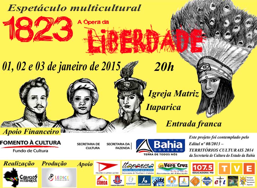 O espetáculo multicultural “1823 – A Ópera da Liberdade” expõe a história política, militar e social da Guerra de Independência da Bahia desde a chegada do Governador das Armas Inácio Luís Madeira de Melo em Salvador no dia 15 de fevereiro de 1822, até a saída do mesmo no dia 02 de julho de 1823. Os acontecimentos são referidos através dos cantos do Grupo Indígena “Os Guaranis”, dos textos dos atores (Maria Felipa de Oliveira, etc...), dos cantos dos heróis (solistas líricos), dos cantos do povo (Coro adulto e Coro Infanto-juvenil) e das coreografias. A construção narrativa persiste num processo idêntico ao observado nas encenações tradicionais realizada pelo Grupo “Os Guaranis”: as hibridações e as miscigenações de elementos de proveniências europeias, africanas e indígenas.