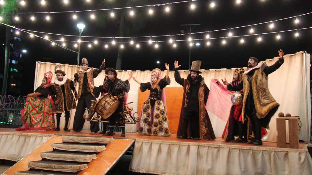 [caption id="attachment_56509" align="aligncenter" width="482" caption="Foto: Zélia Uchôa"][/caption] A partir da próxima sexta-feira (09), o público ilheense poderá conferir a nova comédia do Teatro Popular de Ilhéus (TPI). Vinda de uma temporada de sucesso em Salvador, Medida por Medida, será apresentada às 18 horas em frente à Tenda TPI, na Avenida Soares Lopes. A montagem segue em cartaz no sábado (10) no mesmo local e, entre os dias 12 e 14, será encenada em frente à Catedral de São Sebastião, no mesmo horário. As apresentações são gratuitas, contam com apoio da Secretaria Municipal de Cultura. As apresentações em Ilhéus fecham o projeto Shakespeare – Teatro Popular em Construção, aprovado pelo edital TCA.NÚCLEO 2014 em seleção organizada pelo Teatro Castro Alves e Fundação Cultural do Estado da Bahia (Funceb). Isso possibilitou a ocupação artística do Complexo Teatro Castro Alves entre agosto e dezembro do ano passado, com apresentações de espetáculos, seminários, debates, oficinas, além de intercâmbio com o grupo Clowns de Shakespeare, do Rio Grande do Norte. Medida por Medida é a primeira peça de William Shakespeare a ser montada pelo grupo ilheense que completa 20 anos no próximo mês de agosto. “Voltamos para Ilhéus com outra perspectiva, pois saímos dos limites da caixa do teatro e ganhamos as ruas”, declarou o diretor Romualdo Lisboa, que adaptou o texto do bardo inglês junto com o diretor artístico do Clowns de Shakespeare, Fernando Yamamoto. O espetáculo é apresentado em um reboque de 4 metros de comprimento e 2 metros de largura, projetado pelo arquiteto Carl Von Hauenschild, chamado de Palco Rodante. A cultura popular nordestina e o Movimento Armorial influenciam a estética da montagem. Os figurinos e adereços de Medida por Medida ficam a cargo do potiguar Shicó do Mamulengo e do ilheense Justino Vianna, que também criou a maquiagem. A direção musical foi concebida através da parceria entre Elielton Cabeça (TPI) e Marco França (Clowns). Antes da estreia, o Teatro Popular de Ilhéus realizou ensaios em frente à Tenda TPI, que foram acompanhados pelo público. “Estávamos passando e a estrutura chamou nossa atenção, além da música e da dança. Mesmo sendo um ensaio, achamos tudo muito divertido e estaremos presentes da estreia”, declarou a turista curitibana Jussara Souza. O enredo de Medida por Medida se desenrola a partir das decisões de Ângelo, juiz implacável que entra no lugar do Duque de Viena, fazendo cumprir à risca as leis contra a fornicação.  A partir disso, Cláudio é condenado à morte por ter engravidado sua amada Julieta. Para reverter a sentença, Isabella, noviça e irmã do prisioneiro, tenta negociar com Ângelo. Mas a condição imposta para rever a decisão é a entrega da virgindade da donzela. Para tomar essa decisão, Isabella recebe a ajuda de um frei misterioso.