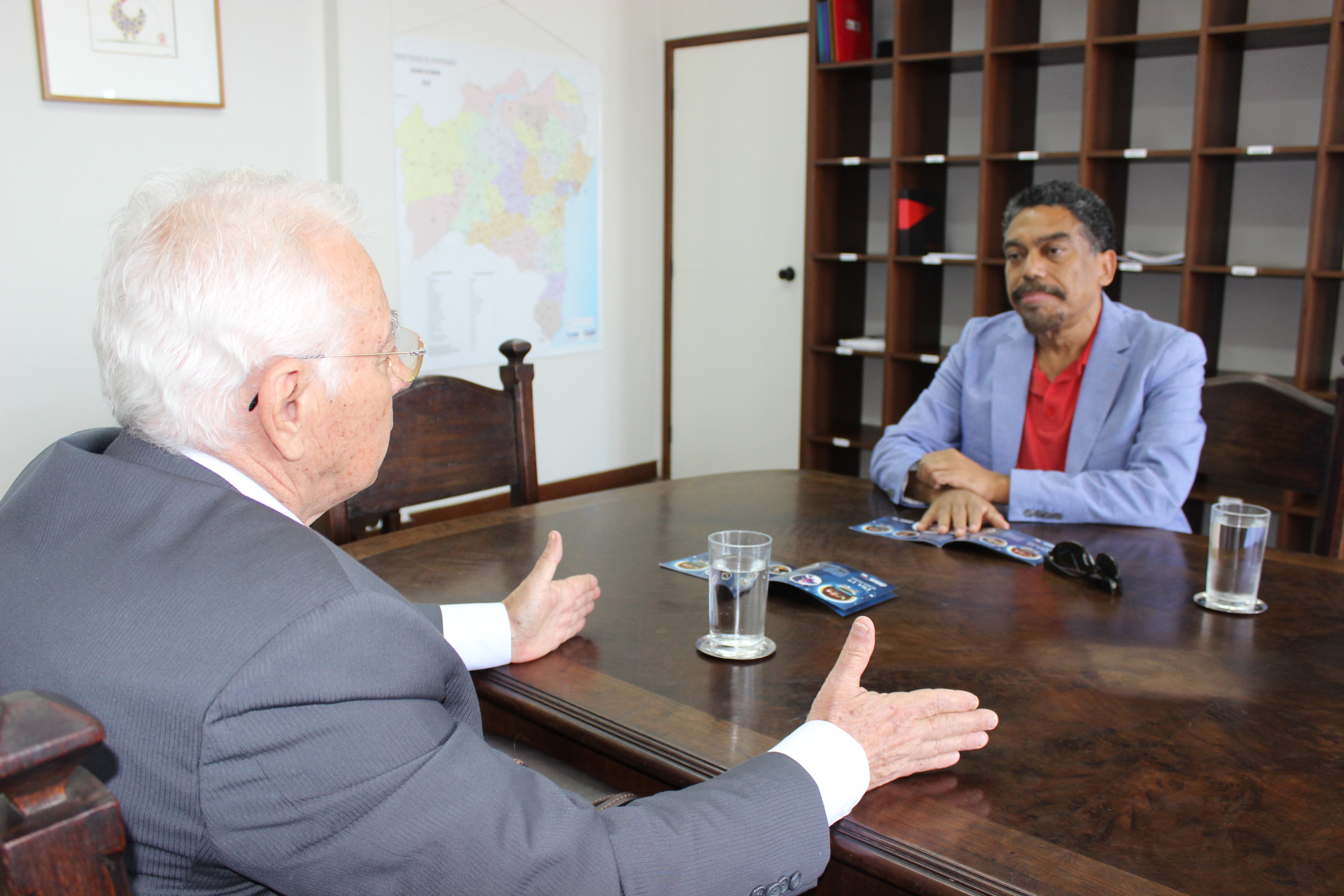O prefeito de Vitória da Conquista, Guilherme Menezes, esteve na Secretaria de Cultura do Estado (SecultBA) na tarde dessa quarta-feira, dia 14, para uma conversa com o secretário Jorge Portugal. Os dois trataram de projetos e ações importantes para a área cultural naquela cidade que devem ser encampados ainda em 2015. Entre os destaques, a reforma do Cine Madrigal, recentemente adquirido pelo município, e que pode vir a se tornar um dos equipamentos culturais mais importantes da região onde nasceu o cineasta Glauber Rocha.