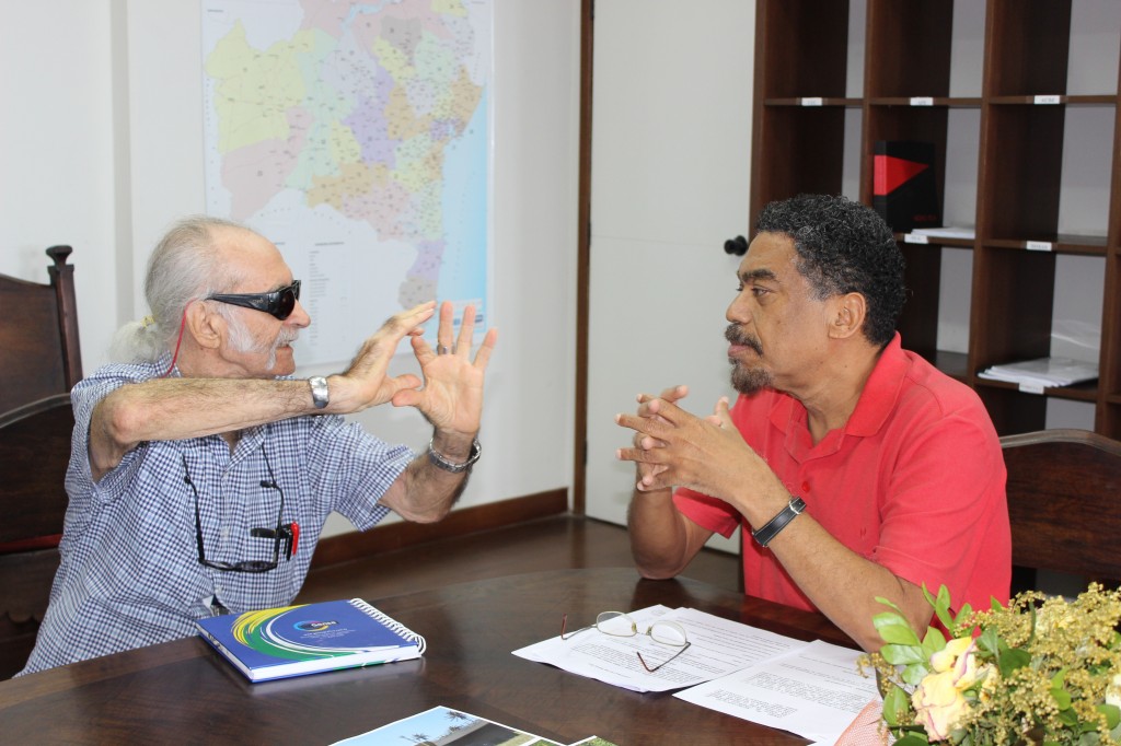 Um dos mais respeitados artistas plásticos do Brasil, Mario Cravo Jr deu as boas-vindas ao secretário de Cultura do Estado da Bahia, Jorge Portugal. Em visita ao Palácio Rio Branco nesta quarta-feira, dia 14, Cravo presenteou Portugal com uma escultura de sua autoria, confeccionada em acrílico. Em conversa que contou com a presença da diretora da Fundação Mario Cravo, Isabela Oliveira, eles discutiram projetos relacionados ao Espaço Cravo, localizado no Parque de Pituaçu, em Salvador, a exemplo do Sistema de Ensino Contemporâneo. A iniciativa ensina aos profissionais o minucioso trabalho de restauração de esculturas, entre outras habilidades. “Quero visitar pessoalmente o Espaço Cravo e o Parque das Esculturas”, anunciou Jorge Portugal.